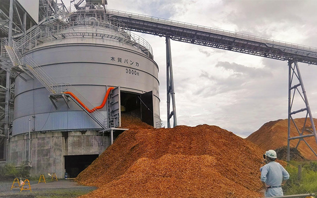 国内未利用材の間伐材等や、農業残渣等のPKS(パーム椰子殻)を燃料として利用し、年間約5億kwh(一般家庭約17万世帯分)の電気を供給しています。