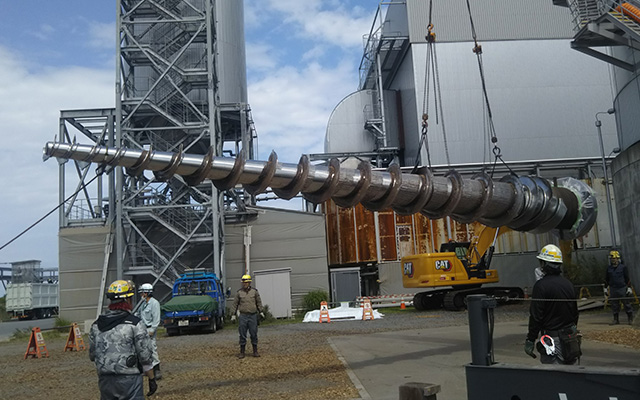 木質バンカーは、燃料の木材を貯蔵し、ボイラーに供給する重要設備であり、修理・整備により電力の安定供給に貢献しております。
