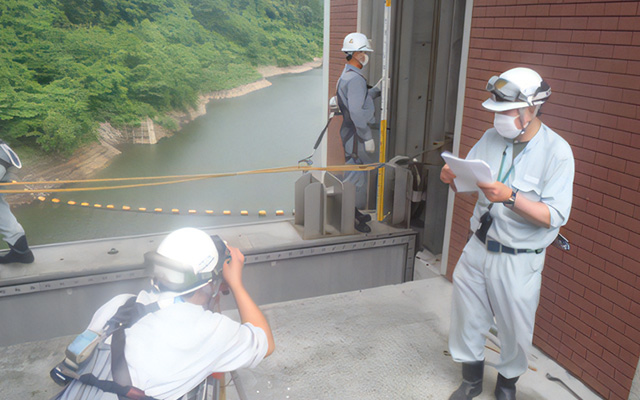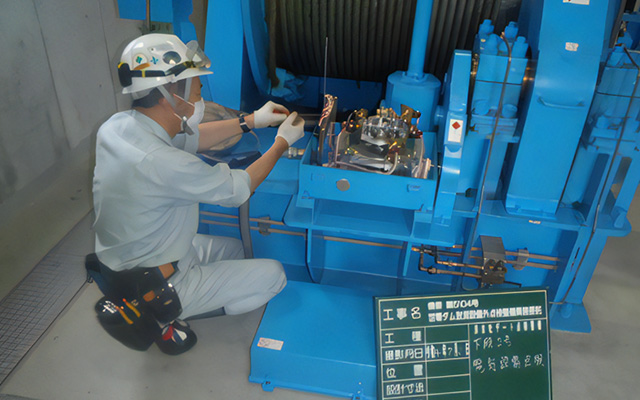 重要な設備である放流ゲートを定期メンテナンスし、設備の安定化をサポートしています。